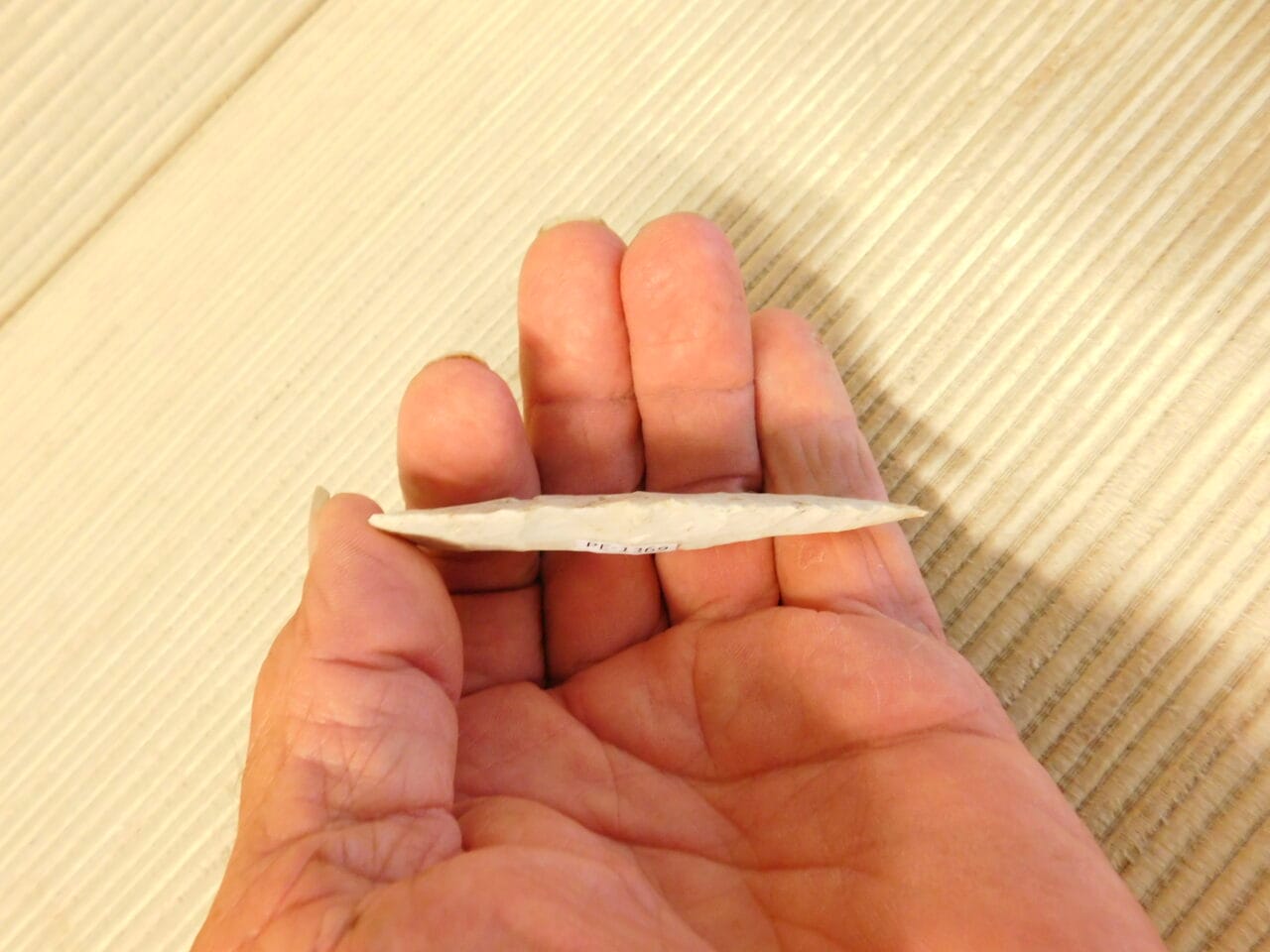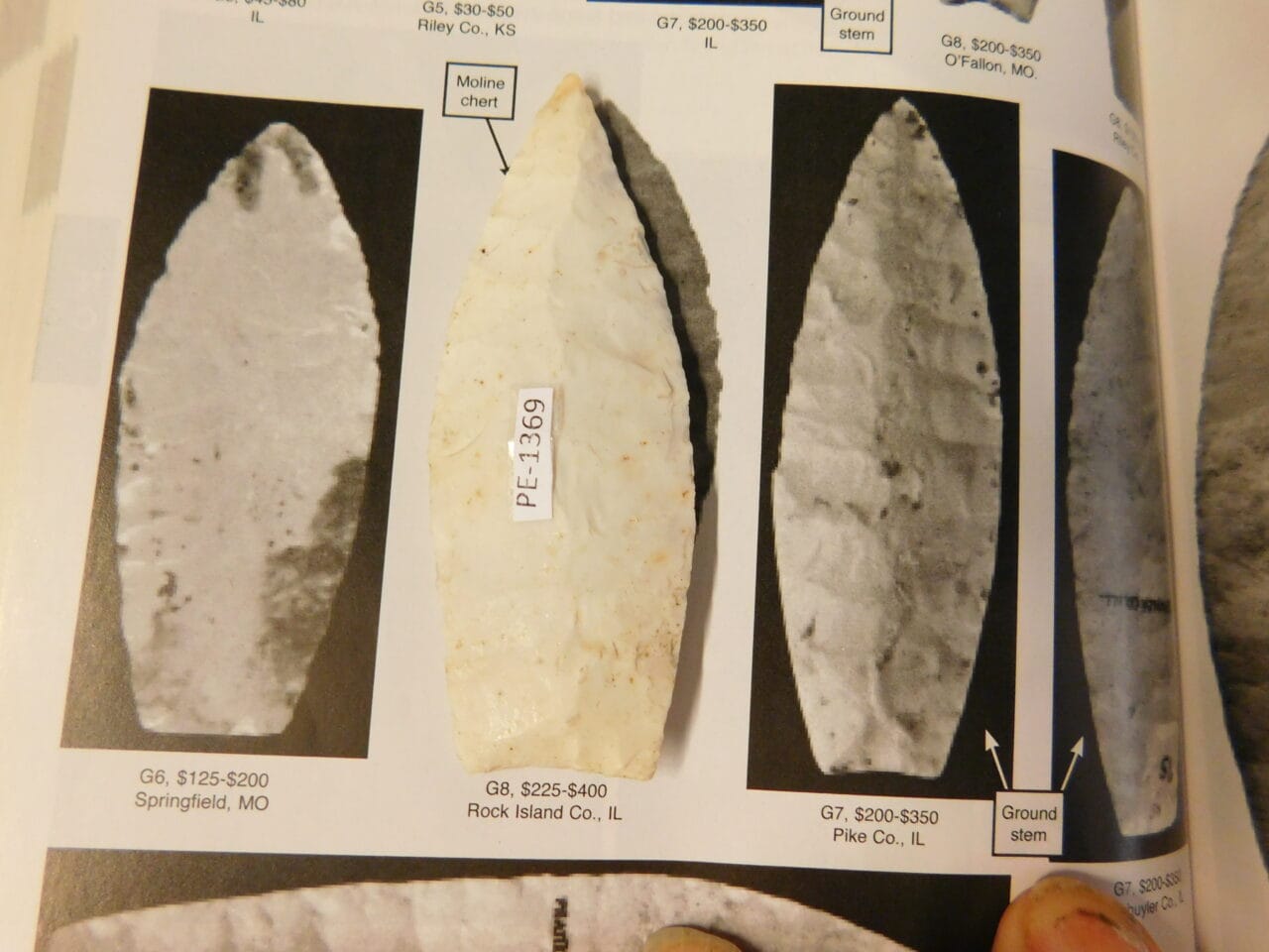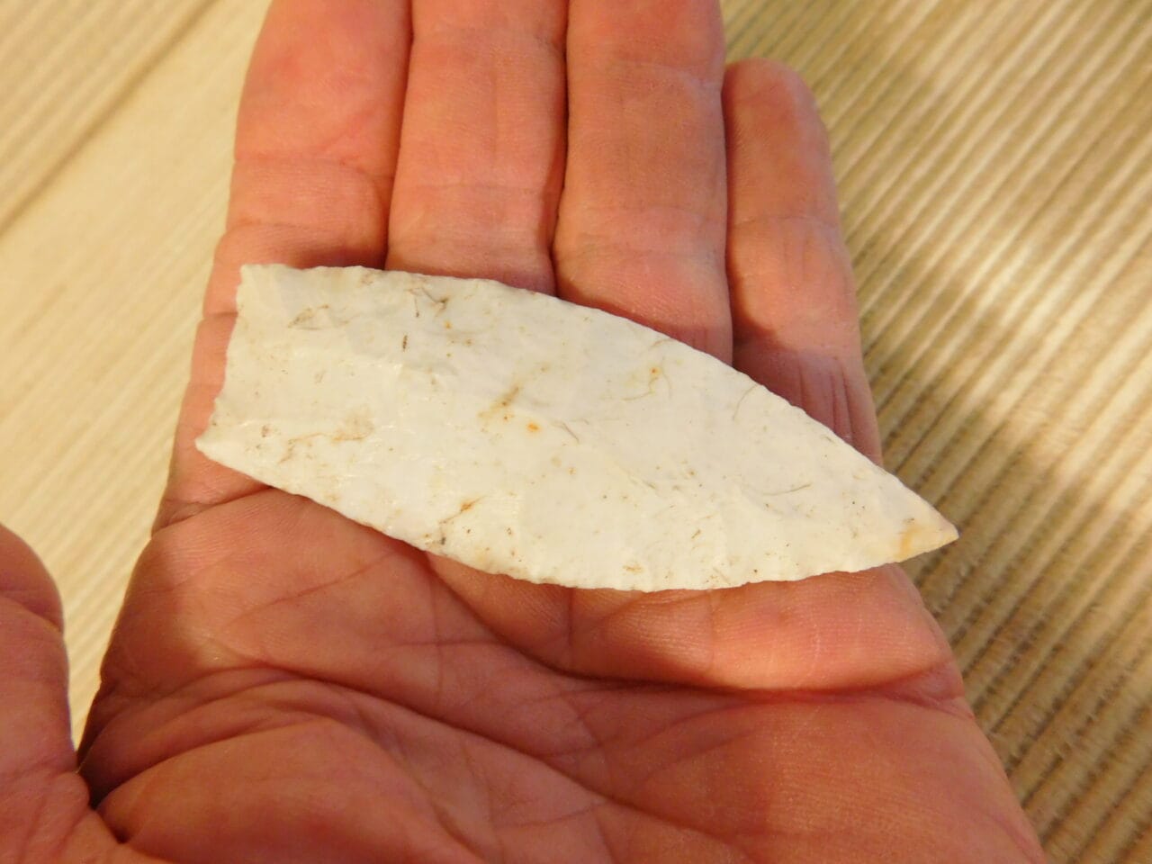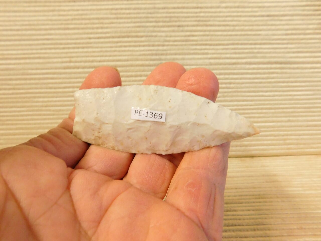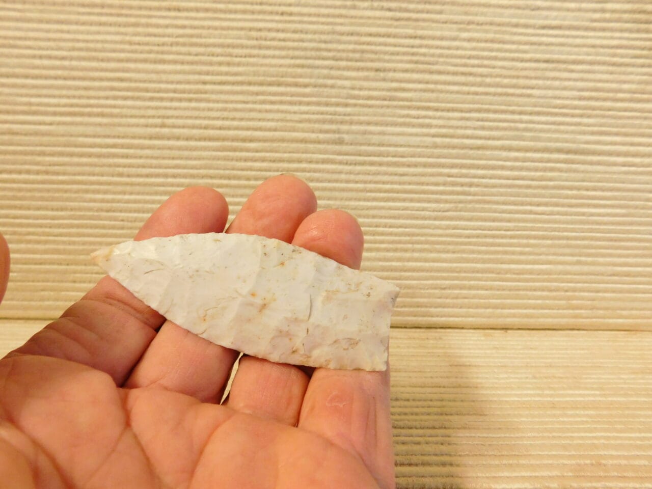 A very nice example of a Agate Basin 3 5/16 inch point Very Well Made Near perfect 3 COA’s 10,200 – 8500 BP This was Jim Ccawford coll. White Burlington Chert. Roy Motley; Maury Meadows; Dwain Rodgers Authentication; Franklin Co. Moissouri.